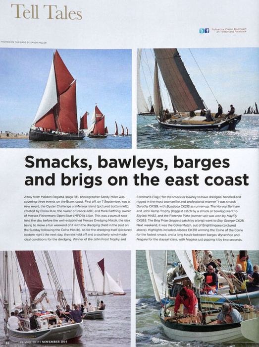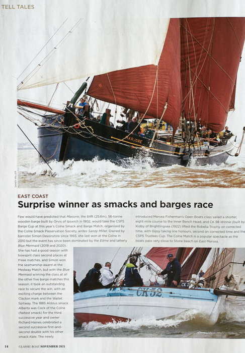 April 2021 issue of Classic Boat: 6 page feature on east coast smacks. Text and images