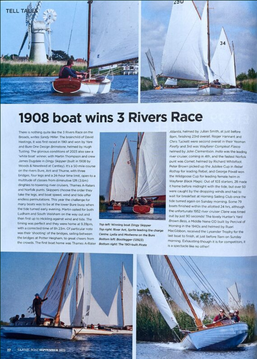 September 23 issue of Classic Boat: Full page report on 3 Rivers Race. Text & Images